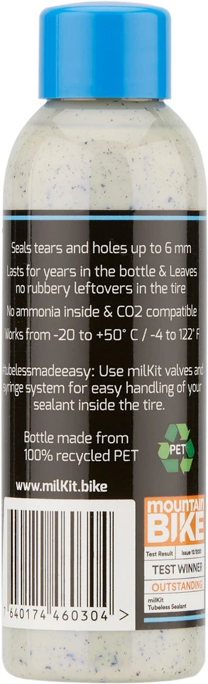 Das Tubeless Sealant von milKit ist ein Dichtmittel für Tubeless-Reifen. Es versiegelt bis zu 6 mm große Risse und Löcher.