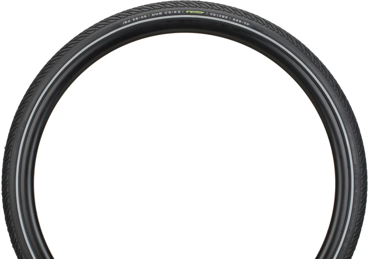 Dimension:28 x 1,5″ETRTO:40-622Luftdruck:3,5 – 6,0 barBelastbarkeit max.:112 kgE-Bike-Freigabe:ECE-R75 Prüfzeichen, zugelassen für schnelle E-Bikes bis 50 km/hHerstellernummer:11159053.01