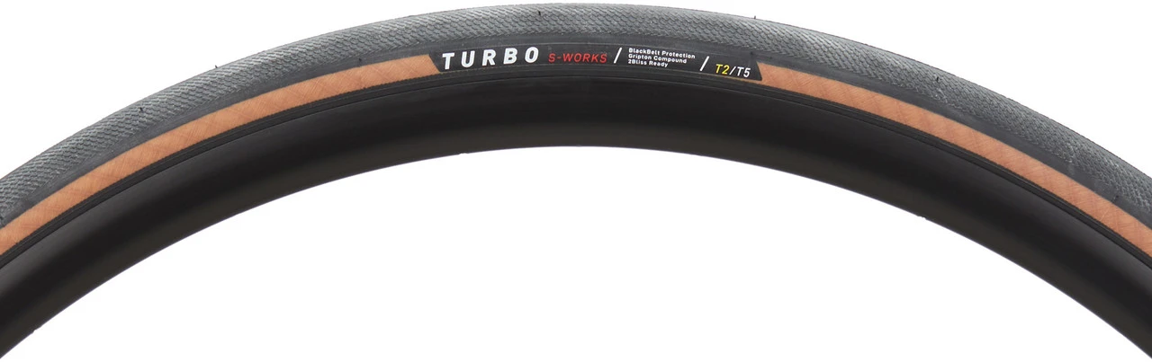 Der S-Works Turbo mit 2Bliss-Ready-Tubeless-Technologie ist ein Rennradreifen für den anspruchsvollen Wettkampfeinsatz, der sich auf Asphalt genauso gut schlägt wie auf Kopfsteinpflaster. Die Kombination aus GRIPTON®-T2-Gummimischung auf der Lauffläche und GRIPTON T5 an den Schultern macht ihn schnell, effizient, griffig und haltbar zugleich. So sparst Du wertvolle Watt ein, wenn es drauf ankommt. Der Reifen verfügt über eine geschmeidige 120-tpi-Karkasse und wurde mit einem überarbeiteten BlackBelt-Pannenschutzgürtel ausgestattet. Dieser schirmt ihn gegen Durchstiche ab und bringt dabei kaum Gewicht mit sich. Der S-Works Turbo kann mit Schlauch oder schlauchlos gefahren werden. Er performt auch hervorragend auf hakenlosen Felgen, da die mit Zylon verstärkten Reifenwülste höchsten Sicherheitsanforderungen genügen.